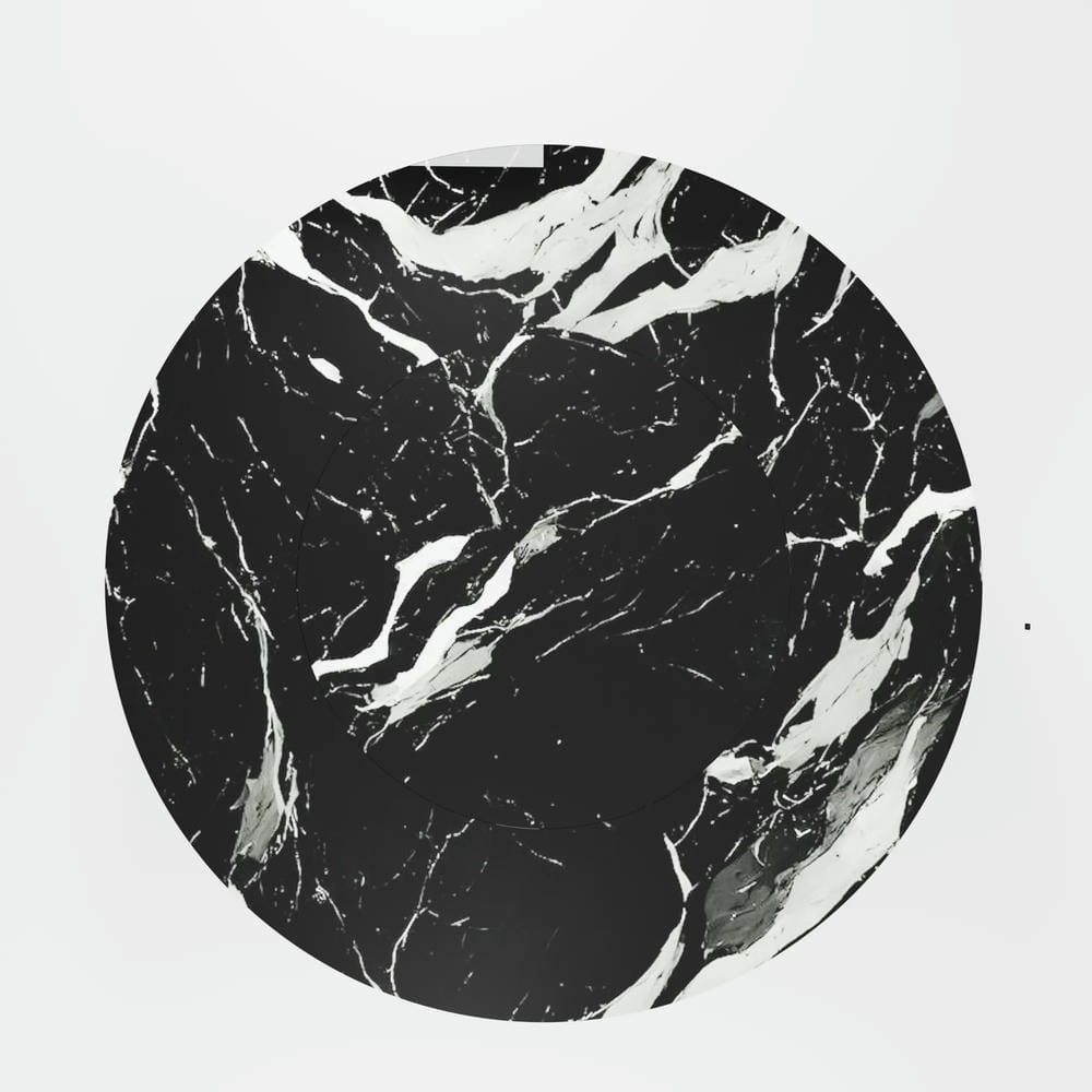 The Obsidian Round Marble Dining Table combines luxurious design with modern sophistication. Featuring a striking black marble top and an architecturally crafted base, this table is designed to elevate any dining space. Its polished surface reflects light beautifully, creating a bold focal point for gatherings. (Top rotating piece not included.)